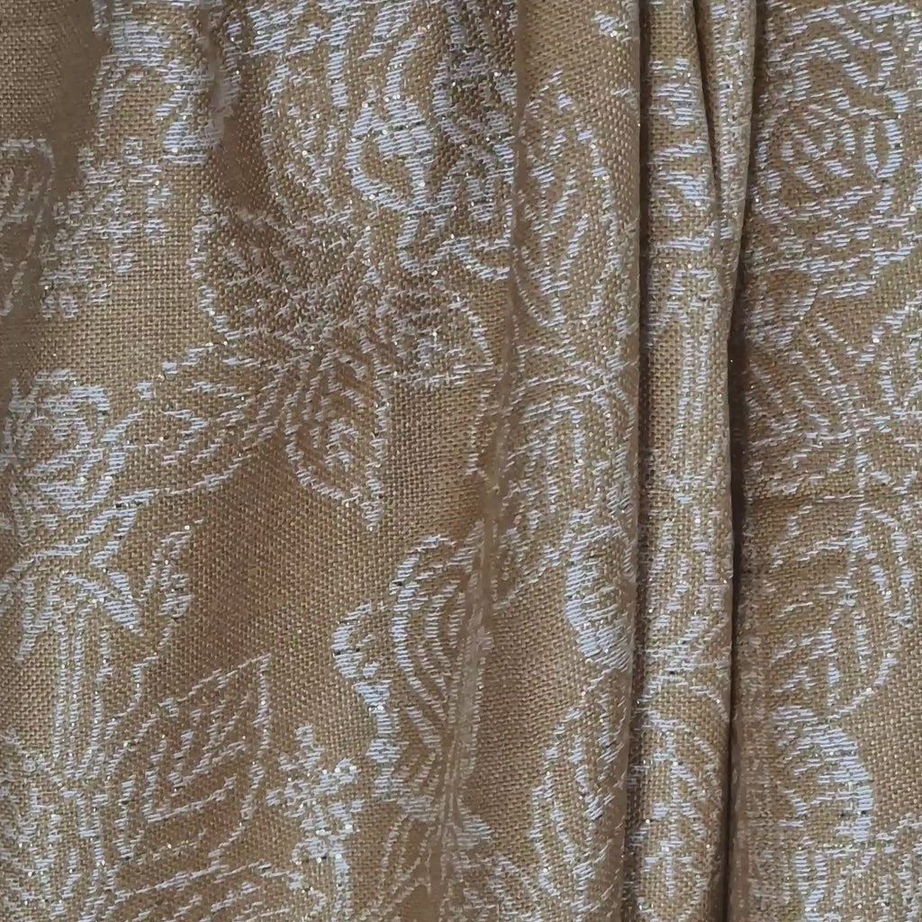 Elevate your style with this pale orange stole, crafted from 100% pure wool and accented with a silver zari woven design. Its rich texture provides cozy warmth, while the subtle metallic threads add a touch of bold sophistication.