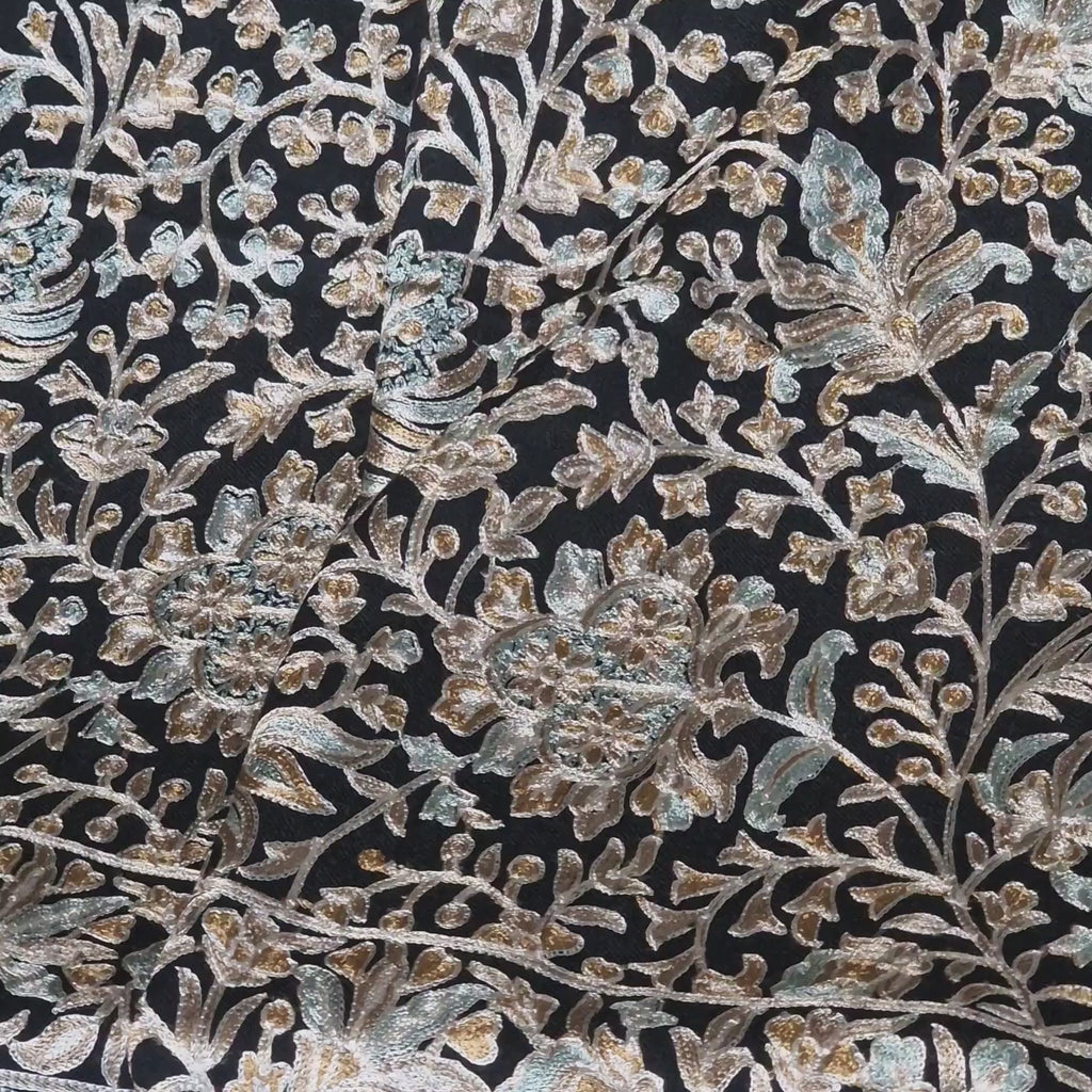 Discover the luxurious elegance of the Pashmina Fine Wool Nalki Embroidery Weave Stole, designed to offer both warmth and sophisticated style. Expertly crafted from 100% Pashmina fine wool, this stole features delicate Nalki embroidery with vibrant orange and blue floral patterns, creating a stunning contrast against its classic black base.