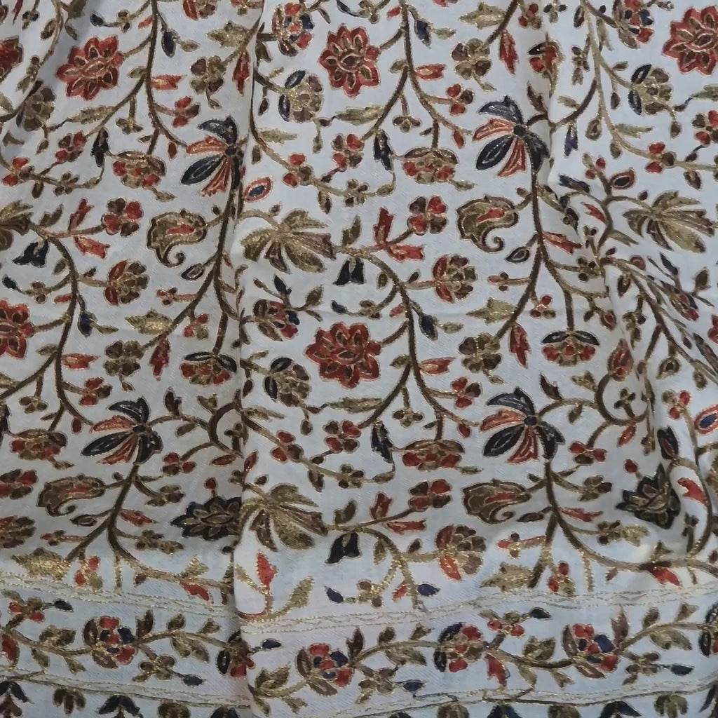 White Pashmina Fine Wool Hand-Embroidered Floral Nalki Stole